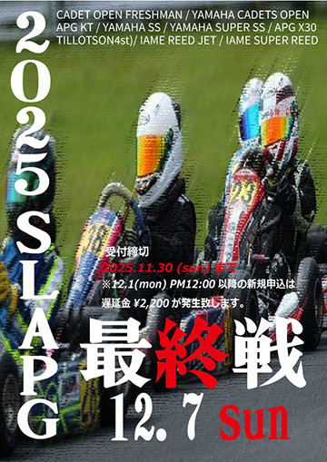 【開催クラス】CADET OPEN FRESHMAN/YAMAHA CADET OPEN/APG KT/YAMAHA SS/YAMAHA SUPER SS/APG X30/TILLOTSON(4st)/IAME REED JET/IAME SUPPER REED