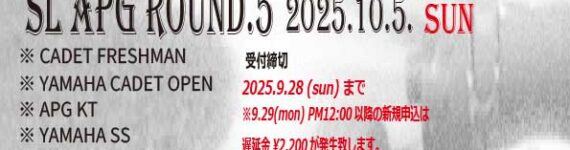 【開催日】2025年10月5日(日) 【エントリー締切】9月28日(日)PM 12:00迄 ※9月28日(日)PM 12:00以降の申し込みに関しては遅延金(¥2,200)が発生します。 【開催クラス … 続きを読む 2025 SL APG 第5戦